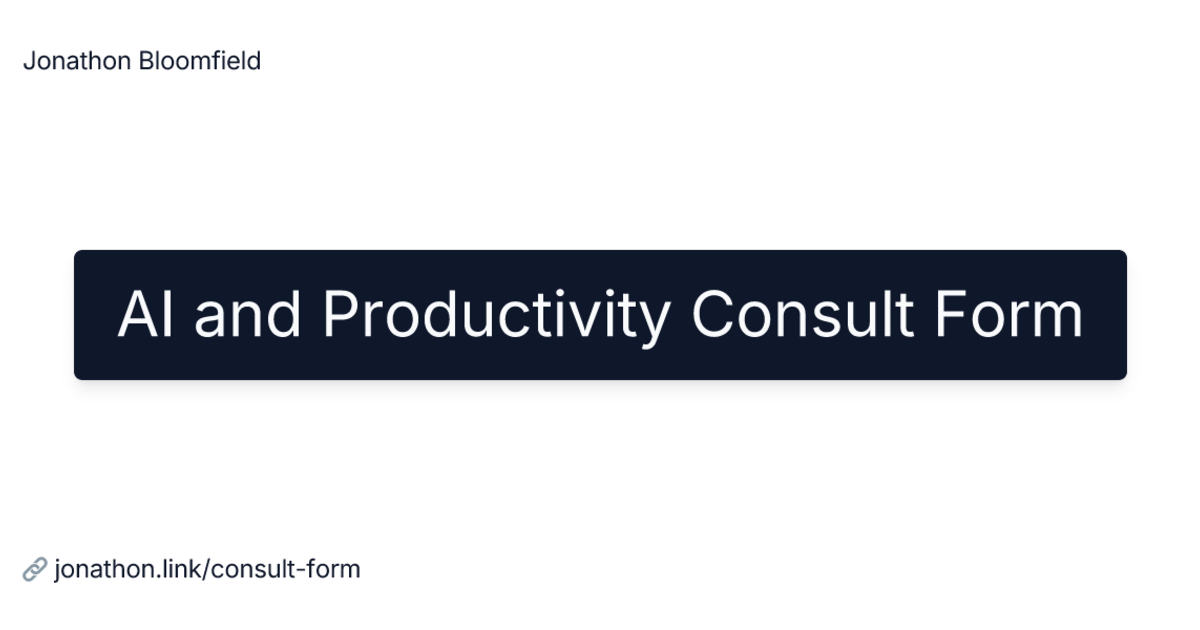 Transform your productivity with AI expert Jonathon Bloomfield. Book a personalized consultation to unlock increased productivity, streamline workflows, and master AI-powered tools. Start your journey to enhanced efficiency today.